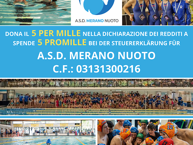 Der ASD Merano Nuoto bietet auch Aquafitness- und Hydrogag-Kurse für alle Altersgruppen, sowie Kurse zum Erwerb des Rettungsschwimmerzertifikats an, welches das FIN-Diplom umfasst und sowohl auf nationaler als auch auf internationaler Ebene gültig ist.